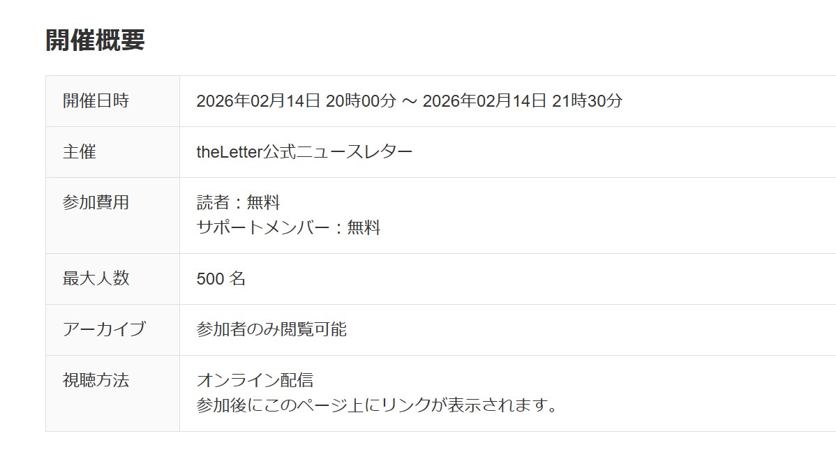さて!冒頭でも書きましたとおり、theLetterを開始して初めてのイベントの告知をさせてください。